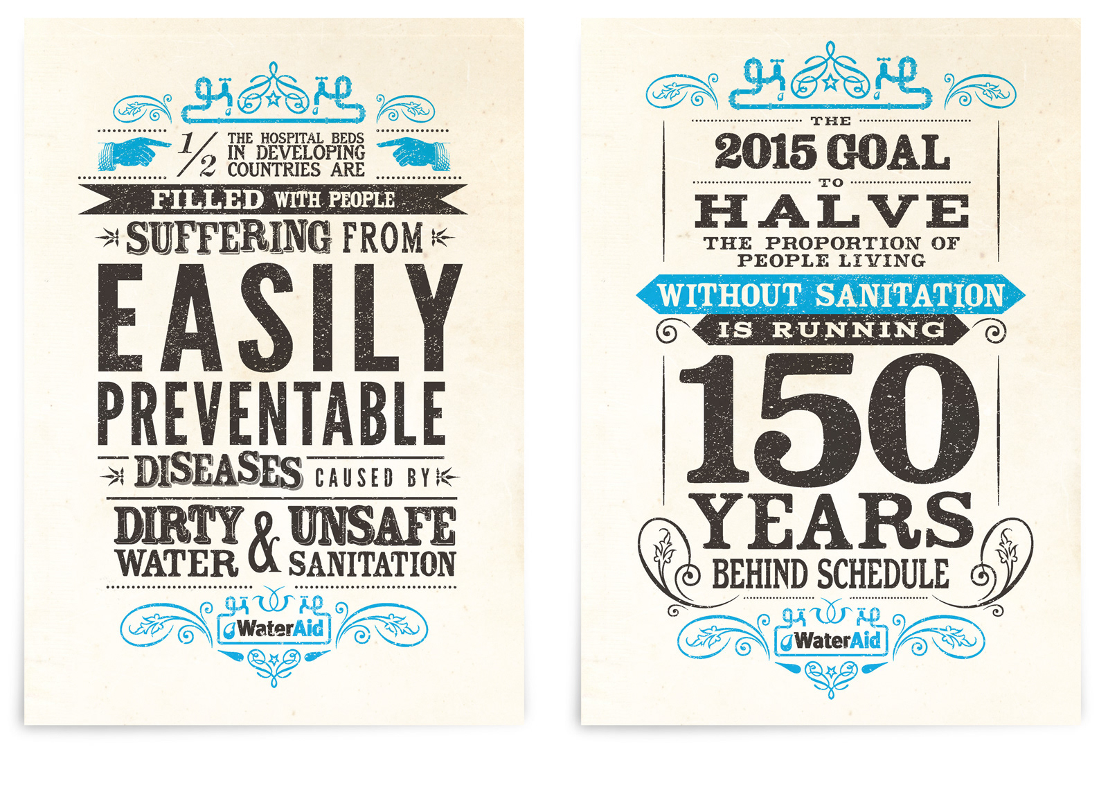 This series of typographical posters were created to promote WaterAid’s message and gain petition signatures across UK festivals. Hung around both Glastonbury Festival & Bestival for two years running, the designs are reminiscent of vintage gig posters.